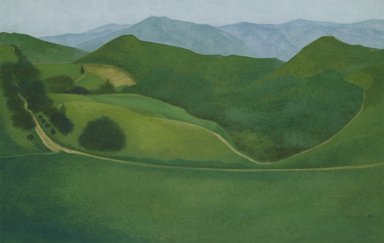 마음과 대상, 물성이 대화하는 순간들 예술적 시간은 수평적 시간의 선분 위에 수직적 시간들이 개입된 시간의 층이다. 마치 잔잔한 바다에 갑자기 커다란 번개가 치고 폭풍우가 밀려오듯 예술가의 시간은 다분히 수직적이다. 하연수 작가가 그린 숲속, 나무들 위로 비치는 잎과 빛의 붓질과 흔적들은 오랜 시간의 누적으로 형성된 나무이며 빛의 숲이다. 반복된 붓질의 과정 중에 순간적으로 일어난 예술적 시간들이 모이고 쌓인 시간의 층들을 켜켜이 쌓아 올린 것이다. 하연수 작가의 산과 바다 그림은 고전적 아름다움의 장식적인 풍경화 라기보다는 본질을 향한 여정과도 같다. 산과 바다의 형태와 형상 속에 내재된 본질을 파악하기 위한 끝없는 붓질의 여정이다. 작가가 표현한 그림은 재현의 세계라기보다는 대상과 형상을 작가의 몸과 마음에 내재화 시켜 동시에 서로를 구분 짓지 않으며 서로를 포용하는 빛과 색의 풍경 그림들이다. 이러한 풍경 안에 존제하는 다양한 생명들이 내뿜는 빛과 색의 그리기는 ‘매일 다른 눈으로 바라본다’라고 하는 작가의 시선과 체화된 물성과 대상들이 하연수 작가만의 회화로서 변주된다. 조금 떨어져서 바라보면 평안한 산의 모습을 그린 풍경화 같지만 그려진 그림의 산속 안에는 수많은 생명들의 소리와 그들이 내뿜는 빛과 색이 작품속에 내재해 있다. 작가의 작품 속에 누적된 안료의 배합과 안료를 접착시키는 접착제, 붓의 사용법 등은 체계적인 동아시아 전통 채색화 기법의 토대 위에 있다. 오랜 시간 누적된 실험과 시행착오의 결과를 거치면서 채색의 사용방법에 대해서 몸으로 습득된 작품 제작 방식이다. 하연수 작가는 그림의 바탕이 되는 종이를 선택하고 그 바탕 위의 견고한 안료의 층을 만들기 위해 여러 차례 아교를 입힌다. 가루 입자의 안료와 돌가루 안료의 층을 만들어 내는 일은 오랜 시간 몸에 누적된 경험치의 산물이다. 다양하고 예민한 붓들로 색채를 혼합하며 안료의 물성이 가진 고유의 특성과 성격을 파악한다. 아주 작고 미세한 입자들을 붓에 묻혀 바르고 긋는다. 때로는 천천히 잔잔하게, 때로는 거칠고 속도 있게 누적된 층 위에 안료와 수분을 머금은 붓이 스치고 지나간다. 대상에 작가 자신을 투사시키기도 하며 자신이 풍경을 마주했던 기억 등이 온연히 마음에서 손을 타고 붓끝으로 전달된다. 그리고 안료 입자 간의 층돌로 파생되는 새로운 색과 빛을 머금은 대상과 안료의 작은 물성들과 끊임없이 대화하는 예술적 시간이 누적된다. 그 대화는 자신과의 독백일 경우도 있고 자신이 경험했던 쉼 없이 움직이는 구름과 바람, 물, 해와 달, 공기 내음, 풀잎, 꽃, 새와 나무들과의 대화를 시도하고 있다. 하연수 작가의 작품을 보다 자세하게 살펴보면 작가가 그린 풍경의 하늘이나 물결 빛의 윤슬과 같은 모습들은 상당히 두텁게 중첩된 붓질의 연속으로 나타낸 자연의 빛과 색의 흔적들이다. 잔잔하게 보이는 숲의 색 층은 셀 수 없는 붓질과 기다림 속 시간의 연속이 베여있다. 우리가 아름답다고 하는 장식적 아름다움의 속성이 아닌 본질을 향한 어떠함과 대상과의 교감이 자리 잡고 있다. 이러한 그림 되기 이전의 투영됨이 그림을 그려가는 과정 속에 침잠되어 있으며, 상투적인 풍경화와는 다른 지향점을 갖는 독특한 하연수 작가만의 개성과 매력을 담게 된다. 미적 감각의 입장에서 이러한 행위들을 살펴보면 이러한 작업 진행 과정은 완연한 예술적 시간의 층들이다. 진실한 생활 속에서 직감하고 교감했던 대상들은 이러한 시간의 층 속에 차곡히 쌓이게 된다. 일상에서 마주했던 자연의 대상과 형상들은 하연수 작가의 작업에 막대한 영향을 주게 된다. 그려진 풍경 그림 속에는 모든 일상의 진실한 생활 속에서 마주한 진정성과 생동성을 간직하고 있다.
