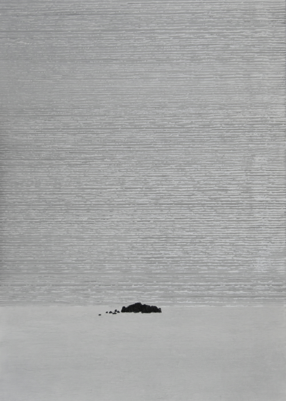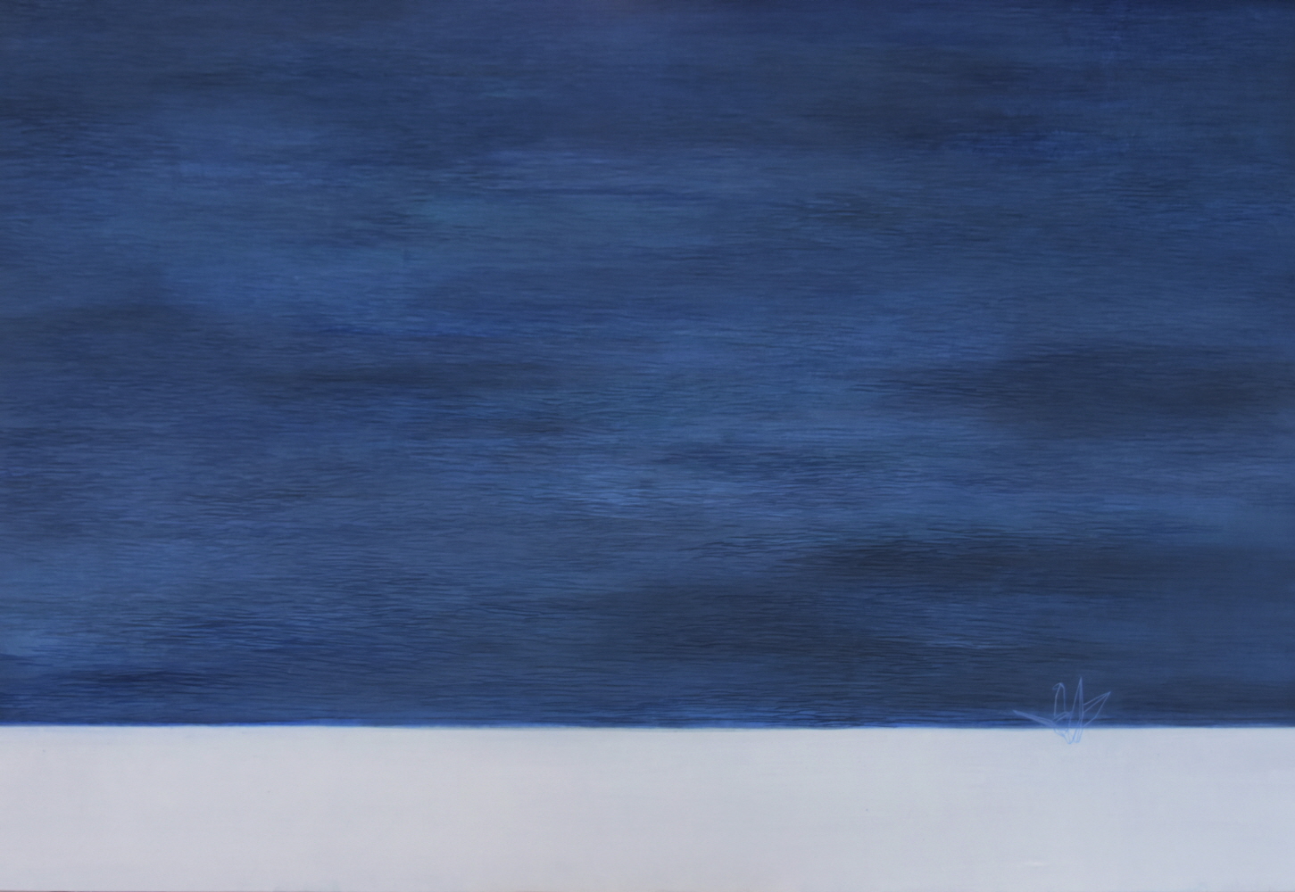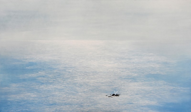 결국, 서로 마주하다 황효실은 자신과 마주한 바다에 감정을 녹여내어 하늘과 맞닿아있는 바다로 표현하였다. 하지만 그저 거대하기만 한 바다가 아닌, 파도에도 꿋꿋이 자신의 자리를 잡고 있는 바위 섬을 그렸다. 그리고 그 위에 한 마리의 종이학을 놓았다. 종이학은 바다 위 바위섬에 위태롭게 서 있기도 하고, 파도에 밀려와 뒹굴기도 한다. 물에 쉬이 젖어버리고 스스로 날지 못하는 종이학이기에, 어쩌면 파도가 치고 예상하기 힘든 바다 앞에서 한없이 약한 존재일지 모른다. 그렇지만 언젠가 종이학이 수많은 시행착오를 겪으면서 조금더 단단해지고, 그러다 하늘로 높이 날아올랐으면 하는 소망을 작가는 담았다. 세상이라는 거대한 풍파 속에서, 비록 종이학처럼 연약할지라도 언젠가는 다른 새들처럼 자유롭게 날 수 있을 것이라는 꿈을 꾸고자 하는 것이다. 하지만 꿈과 달리 현실 속 감정은 그리 녹록하지 않다. 그러한 점이 무의식적으로 근작의 회색 바다에서 드러난 것일지 모른다. 황효실은 푸른색으로 밑색을 칠하면서 시작했던 바다가 겨울 바다에서 느꼈던 감정을 떠올리며 작업하다 보니 점차 무채색으로 덮여갔다고 한다. 명상을 하듯 그었던 파도의 잔물결들이 결을 이루었던 것처럼, 무채색의 바다 역시 작가도 미처 알지 못했던 어떠한 감정의 표현일 것이다. 그리고 어쩌면 겨울바다가 작가에게 들려준 이야기일 지도 모른다.
