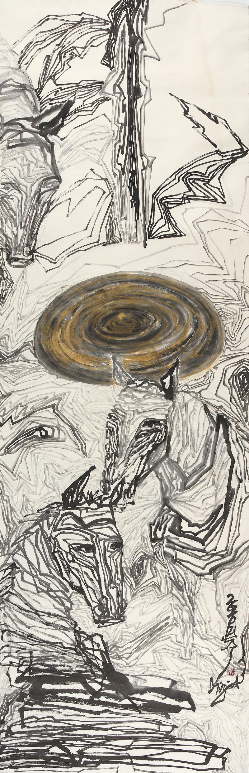 작가가 새로운 공명을 위한 상징적 소통으로 차용하는 이상한 기호나 문자, 원을 비롯한 다양한 도형들, 동물과 곤충의 모습, 마치 제의를 치르는 듯한 설치적 특징 등은 작가 자신의 분신적 모습을 통한 염원과 기도라고 할 수 있으며, 자신이 추구하는 순수 본질의 세계로 접근하기 위한 필연적 방법이라고 할 수 있다. 2016년 11월
