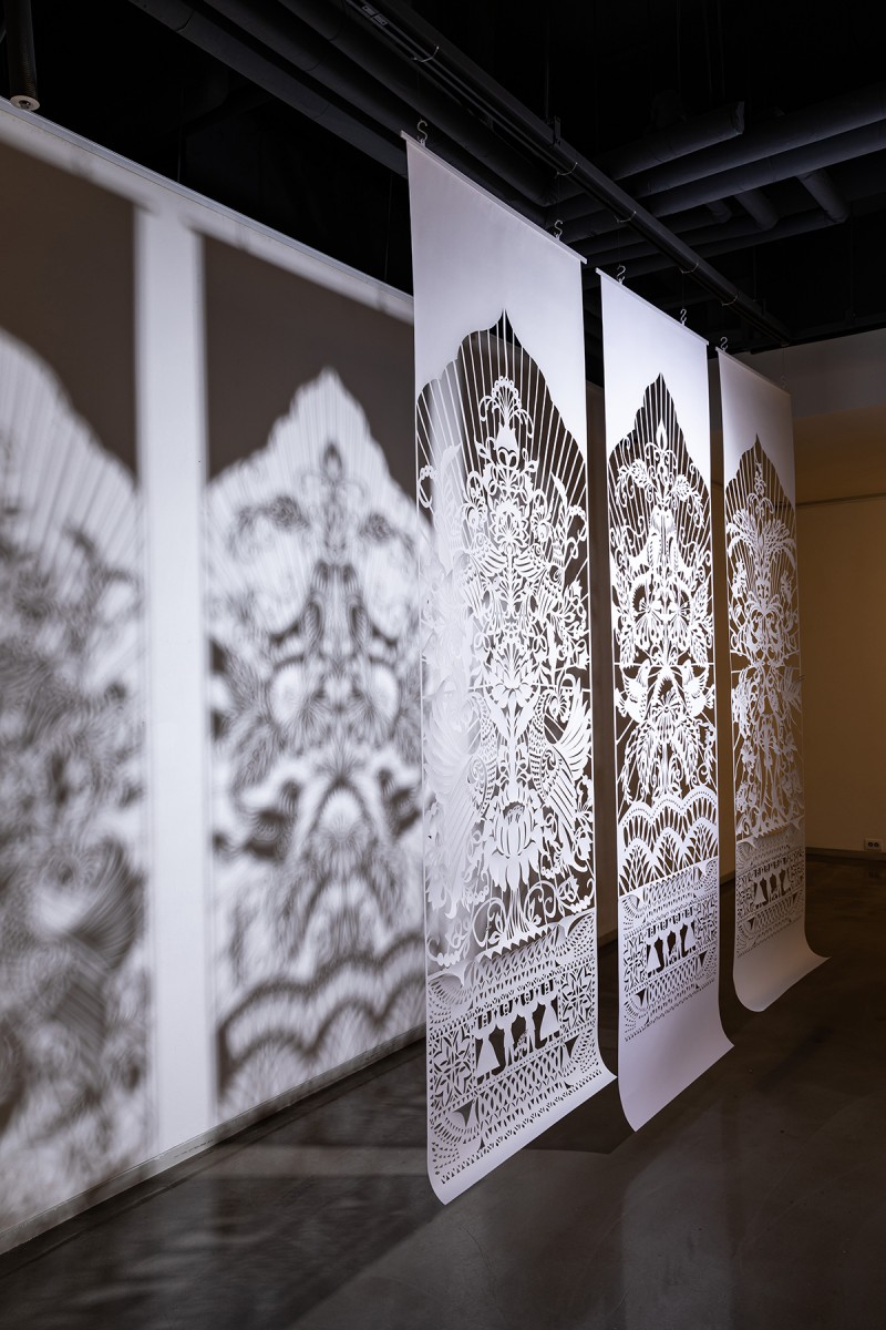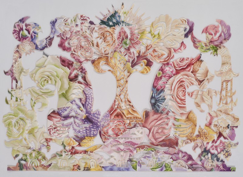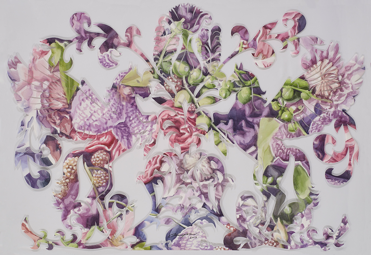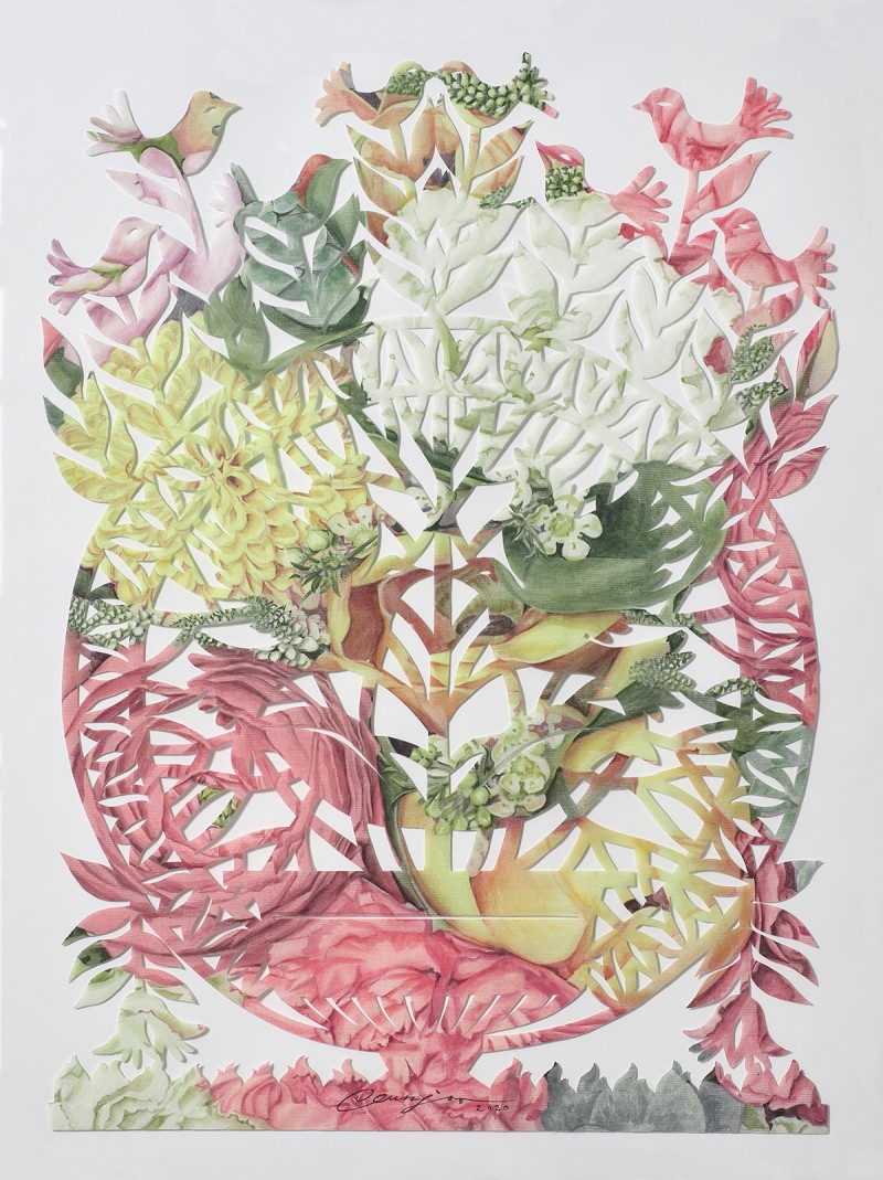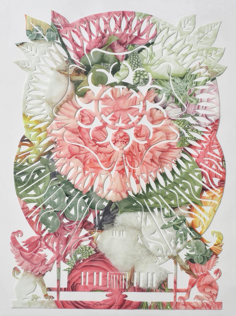 My works began from the fundamental question of ‘what is being a woman?’ In particular, I began to explore the innate value and significance of maternal instinct that exhibit the existence of women by focusing on the existential characteristics of women who, in contrast to men, have biological capabilities for pregnancy and childbirth. I use flowers as the motif in most of my works that exist as a living thing and a subject for communion rather than simply as a subject to be viewed as a decorative and aesthetic object. Through the process of conception and generation of life from the flower, and the caring and growing in such life, I discover the common attributes that both human beings and nature have, which become the materials for new research on the concept of woman. Exploration of maternal instincts through the symbolism of flowers in my works is the exploration of the existence of women, as well as the existence of human beings at the same time. Archetypes of the maternal instincts illustrated in Korean myths became the motivation for my recent works. Maternal instinct viewed through myths is equipped with the volition for self-realization as the source of and fertile ground for life, will-power to protect one’s own creation, emotion of benevolence, and the ability to discern the origins and secrets of life. Maternal instincts in the ancient Eastern and Western myths originated from the Great Mother Goddess as the source of and fertile ground for life. The perception of the ancient people that this world was created just as a mother gives birth to a child symbolized the first god as the Great Mother Goddess. My current work uses the flower of life from the Seocheon (western heaven) flower garden appearing in the ancient mythology of Korea as the object with the Seolwuiseolgyeong (fancy decoration made of paper in the venue of exorcism in Korea), which became the origin of the talisman. One of the reasons why I researched mythologies and fables with interest in recent years is to use them to properly discern the meanings of our present lives. Understanding the collective consciousness or unconsciousness, culture, and life by analyzing the archetypes of maternal instincts illustrated in myths and projecting them onto the women in our current era would ultimately serve the function as a discourse that newly highlights the value of women in the diversified modern society and specifically realizing that value in our daily lives.