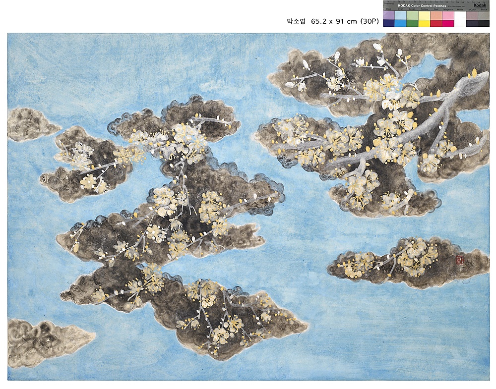이상향의 추구는 동서양을 불문하고 꾸준하게 지속되어 온 중요한 예술 창작의 주제이다. 특히 동양에서의 예술 정신은 자연과 내가 하나가 되는 이상 세계를 표현하고자 하는 것이다. 다시 말해서 자연을 거닐 수 있는 공간을 표현하여 정신을 자유롭게 하는 데에 그 목적을 두고 있다고 할 수 있다. 이처럼 도가사상에서 장자가 말하는 소요유는 슬슬 노니며 거니는 것을 의미한다. 여기에는 단순히 한가로운 산책의 뜻을 넘어서 어떠한 것에도 얽매이지 않는 자유와 해방에 도달한 경지를 담고 있다. 이러한 정신적 소요의 즐거움을 표현하기 위하여 박소영은 구름 속에서 느낄 수 있는 꿈같은 상상을 수묵으로 담는다. 작가에게 작품은 곧 사유를 통해 자신만의 이상향을 세우고 현실 속에서 지친 마음의 위안을 얻는 공간이다. 이상적인 세계를 표현하기 위한 소재로 형상이 없는 구름을 소재로 선택하고 사군자를 의미하는 매화, 난초, 대나무, 국화가 가진 자연의 이미지를 겹쳐 사색을 통한 정신적 자유를 향한 내적 욕구를 투사하여 표현한다. 동양화의 정신은 모든 사물을 표면적으로만 바라보지 않고 마음의 눈을 통해 우주와 자연의 섭리를 인식하는 것이다. 사군자가 가진 선의 움직임만으로 자연의 신비와 아름다움을 관조하는 작가의 감정이 표출된다. 붓질에서 볼 수 있는 무작위의 행위는 인간이 자연과 합일을 이루려는 회화적 구현이라고 볼 수 있다. 여기에는 단순한 재현에 그치는 것이 아니라 작가만의 자연에 대한 순수한 통찰력과 내면의 세계가 화면에 담겨 있다. 작품에 소요의 이미지를 표현하기 위해서 청색계열과 금색을 선택하는데 청색은 비물질적이며 정신적인 범주의 색으로 자연의 본질을 대변하는 색이다. 작가는 농담을 통해 장지 위에 원하는 정도의 번짐과 스밈을 조절하여 구름 위에 반투명한 형상의 층위들을 만들어내며 마치 무중력 상태의 우주처럼 화면 안을 부유하는 것처럼 표현한다.