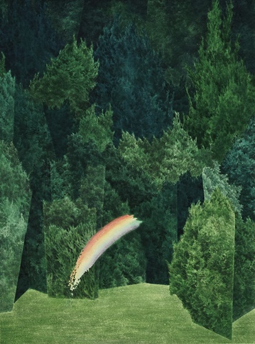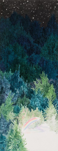 작가노트 ‘한 조각의 무지개를 찾아서’ 원하는 대상이 부재함을 깨달을수록 그것을 원하는 마음이 존재함을 더욱 강하게 확인하게 된다. 내가 빈 화면에 이미지를 그려 넣는 것은, 보고 싶지만 볼 수 없는 것을 그려내어 바라보기 위함이다. 볼 수 없는 것을 보이게끔 그려내는 과정은 소망하는 대상이 비워진 자리를 채우려는 마음이 이끈다. 나는 내가 바라지만 현실에 없는 것들을 손에 잡히고 눈에 보이는 현실의 회화로 그려낸다. 따라서 화면에 보이게끔 그려내는 것은 그것이 현실에 보이지 않음을 나타낸다.