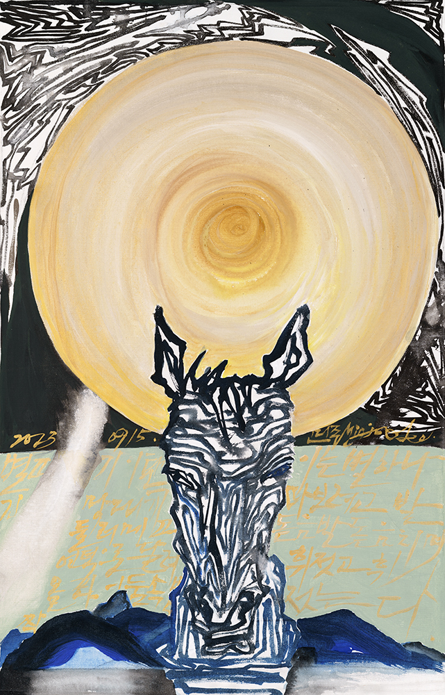 2024.1.5.(금)-1.17(수)까지 갤러리 내일 신년기획초대전 서울시 종로구 신문로 3길3 이민주 minart2@daum.net 010-92651693 이민주 60회 개인전 空(공)의 共鳴(공명)2 2010년 강남에 위치한 BMMUSEUM(부티끄모나코뮤지움)1관,2관,3관 전관에서 공의 공명주제로 전시를 한 후 14년만에 같은 주제인 “空의 共鳴2( Resonance of the Void2)”라는 주제로 현대인의 비어있는 의식 속에서도 서로 공명하고 파장을 교류하며 자연과의 생명의 줄을 영속시켜나가는 모습을 은유적으로 표현하고 있다. 한지 위에 먹으로 그린 ‘응시하는 것들’은 300cmX120cm크기 연작으로 끊임없이 이어지는 시공간에서의 편린들을 이민주만의 독특한 “共鳴筆線공명필선”으로 쳐낸 작품들이다. 화면속의 원들은 공이며 우주면서도 달이 될수도 있고 비움의 상징일수도 있다. 또한 강렬한 그림자들은 강한 빛을 통한 미래의 희망을 암시하기도 한다. 위와같은 대작에서 3호 소품까지 사십여점의 작품을 선보일 이번전시에서 이민주만의 독창적인 작품세계를 감상할 수 있을 것이다. 이민주는 서울대학교 미술대학과 동대학원을 졸업한 후 미국 버몬트 스튜디오, 네덜란드 스탠드 스튜디오, 한국 국립현대미술관이 운영하는 창동스튜디오 레지던스 작가로 선정되어 작가활동과 전시를 이어왔다. 1987년 관훈미술관에서 제 1회 개인전, 1989년 갤러리 현대에서 제2회 개인전을 시작으로 스페인 마드리드 국립대학 갤러리, 독일 크레펠드(뒤셀도르프 옆 요셉보이스가 태어난 곳) 그라이펜호르스트 성 갤러리를 비롯해 미국 뉴욕, 워싱턴, 중국 등에서 초대개인전을 열면서 한국화에 기반을 둔 작가로서 한국화의 세계화를 위해 평생 이바지해 오고 있다. 특히 스위스와는 이십여년간 아트페어에 참여하면서 작품을 알려오고 있으며 인도와는 이십여년간 교류전과 아트캠프에 참여하면서 양국간의 문화를 교류하는데 크게 이바지해 오고 있다. 이민주는 말한다. “저 세상에서 들려오는 요정의 소리를 들으며 자연의 빛과 공명하며 그어진 선과 색으로 화면을 채운다. 우주로부터 전달된 나의 “共鳴筆線공명필선”으로 그어진 작품들은 5대륙의 관객들과 파장을 교류하며 이십여년간 공명을 일으켜오고 있다. 한국의 전통적 미학을 현대적 감성으로 해석한 작품들은 카오스로 시작되어 우주를 떠돌다가 이제는 어느 시공간에서 시적인 형상으로 나타나기 시작한다. 그리고 공의 공명은 계속 진행될 것이다...“라고 주요 작품캡션 1-Contemplating things, 300X120cm, 한지 위 먹, 과슈, 2023 2.-공의 공명1, 60.6x72.7cm,mixed media on canvas,2023 3.달 달 무슨달,60.6X60.6cm, mixed media on canvas,2023 4-Moonlight Concerto, 90.9X60.6cm,mixed media on canvas,2023 5-Satisfaction,90.9X60.6cm,mixed media on canvas,2023 6-Meditation under the Moonlight,60.6x60.6cm,mixed media on canvas,2023 7-그리운 백두산, 45.5X53cm,mixed media on canvas,2023 8-The Feast under the Moonlight2, 22X22cm(3S),mixed media on canvas,2023 9-The Feast under the Universe1, 22X22cm(3S),mixed media on canvas,2023 10-The Feast under the Moonlight3, 22X22cm(3S),mixed media on canvas,2023 11-The Feast under the Moonlight1, 22X22cm(3S),mixed media on canvas,2023 12-The Feast under the Lights,33.4X21.2cm,mixed media on canvas,2023 13-The Feast under the Universe2,33.4X21.2cm,mixed media on canvas,2023 14-The Hope, 60.6X72.7cm,mixed media on canvas,2023 Minjoo Lee 李珉柱이민주 서울미대 회화과 및 동 대학원 졸업후 서울대 경희대 및 대학원 강사, 겸임교수 역임 개인전59회(서울 갤러리 현대, 문예진흥원미술회관, 예술의 전당, 한전아트센터,인도아트뮤지엄,겸재정선미술관, 안상철미술관 / 독일 베를린, 크레펠트,포슈하임,/중국 상하이/미국 워싱턴 , 필라델피아, 뉴욕/네덜란드 헤이그/스페인 마드리드 국립미술대학교 갤러리 등 세계종이비엔나레, 광주비엔나레, 방글라데쉬비엔나레, 칭따오 비엔나레, 전남국제수묵비엔나레 , 전북 국제비엔나레, 쌀롱 꽁빠레종, 쌀롱 드라 젠느 뼁뛰르 등 단체전600여회 및 국제 아트페어20 여회 한국예술발전상(서울), 테일러미술상(파리),국제선면전상(동경),프리맨얼터닛츠그랜트(미국) 한국 국립현대미술관, 국립현대미술관 미술은행, 경기도미술관,양평군립미술관, 월전미술관, 박수근미술관, 고려대학교미술관, 서울대학교미술관, 삼성엔지니어링, 평창 인터컨티넨탈호텔/ 스위스 BBInternational art.gmbh , 유엔대표부. /인도AOVM, /미국, 스페인 , 일본 등에 작품소장됨 20대 한국 미술협회 부이사장, 대한민국 미술대전 심사위원 및 운영위원역임, 장애인 아트페어심사위원장, 기타 공모전 운영위원장 및 심사위원 역임 서울대학교, 고려대학교대학원, 경희대학교 및 대학원 등에서 강사 및 겸임교수 역임 현재, 한국 인도 현대작가교류회 회장 minart2@daum.net MFA and BFA Seoul National University ,College of Fine Arts Present: President of Samsim Art, President of KICAA Solo Exhibitions 59times(Seoul, NewYork, Madrid, Berlin, Forchheim, Krefeld,Washington,Philadelphia, Shanghai, Den Haag and etc) Group exhibitions more than 600times including Seon/Zen Buddhism and Acharya Bodhdharma(Indian Museum, New Delhi)/ Le salon du dessin et de la peinture a l ‘eau(Grand Palais-Paris, Taylor prize/)/Salon Comparaison(Grand Palais, Paris)/Salon Grand et Jeune d’aujourd’hui(Grand Palais, Paris), Freeman Alternate