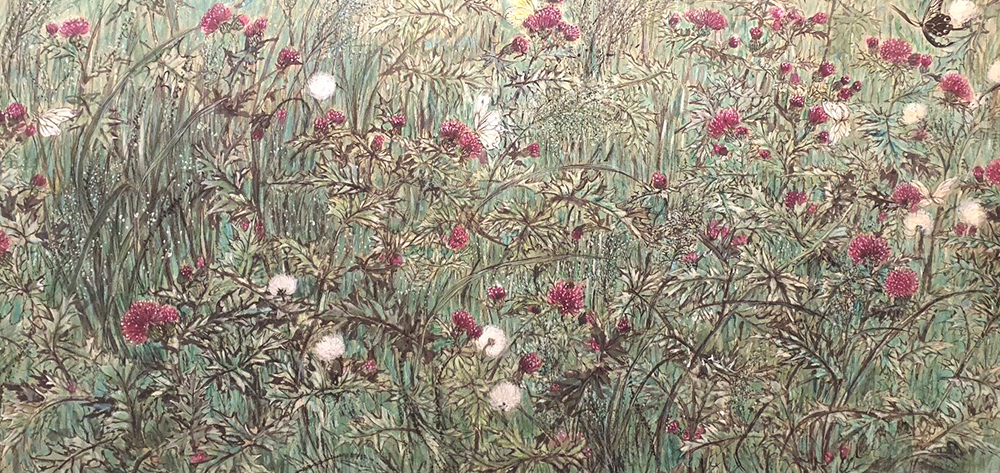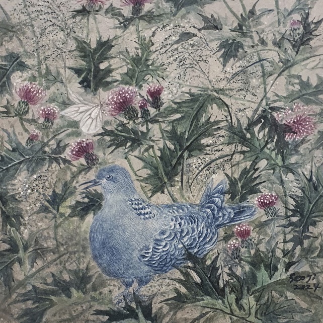 작년 말, <우리 꽃 그리기> (한장 두장, 2023)를 출간했다. 우리나라 화훼영모화의 전통을 임모와 사생을 통해 익힐 수 있도록 펴낸 책이다. 임모작은 한국의 자랑할 만한 고전 작품으로 선정했고, 사생작은 내 정원과 주변에서 볼 수 있는 친숙한 우리 식물을 중심으로 그렸다. 그리고 올해 2월, 출간을 기념해 내가 지도 하는 '우리 꽃 그리기' 연구회 회원과 함께 첫 번째 회원전을 개최했다. 이번 나의 아홉 번째 개인전은 이 연장선에 있다. 돌이켜보면, 나는 긴 시간 동안 일상과 작업이 하나가 되는 삶을 원했고 이를 위 한 선택을 했다. 도심을 벗어나 교외로 나가 집 겸 작업실을 꾸리고, 뒷마당에 덧 받과 정원을 만들어 철마다 피고 지는 꽃과 나무를 심었다. 여기서 나는 씨 뿌리고, 가꾸고, 거두고, 거닐며 또 먹는다. 그 안에서 변화하는 자 연을 본다. 또 이를 화폭에 옮긴다. 이것이 지금의 일상이다. 하루와 사계절이 반복된다. 이 안에 기쁨이 있다.