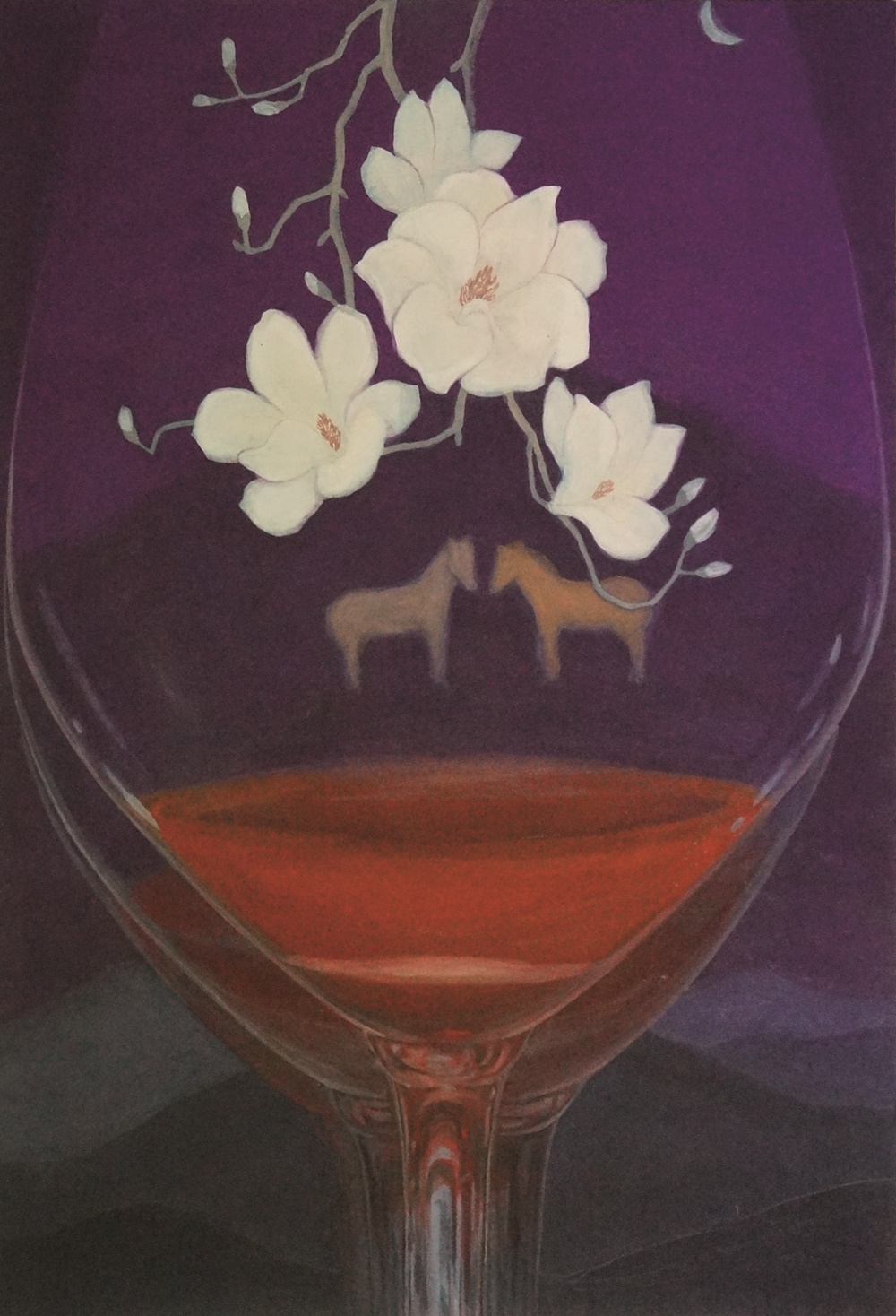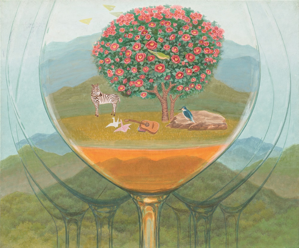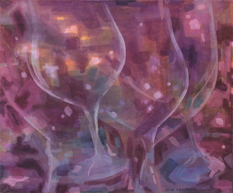 문명을 대변하고자 차용된 와인 잔과 자연의 관계는 내가 살아가는 현실과 이상의 대립이자 공존이다. 와인 잔과 풍경이라는 긴장 관계에서 상반된 듯 보이는 둘 사이의 조화를 얘기하고 자 한다. 생존 조건에 따라 떠도는 현대인의 불안정한 삶을 철새로 나타내었다. 공간의 뒤섞임과 다른 계절이 한 화면에 같이 놓여 질 때도 있다. 다른 환경에 있어야 할 동물들의 마주침은 생태계의교란, 혼돈과 질서의 파괴를 얘기한다. 그럼에도 얘기가 직설적이거나 공격적이지 않은 이유는 인간은 자연에서 신을 발견하고 사랑을 알아가기 때문이다. 낯 선 듯 친숙한 것 가운데 느끼는 추억과 향수가 우리의 지친 영혼에 위로와 평안과 활력 주기를 원한다. 넓은 바다와 하늘, 숲은 생명이 잉태된 곳으로 回歸하고픈 안식의 공간이다. 그 곳에서 잃어버린 꿈을 꾸며 진정한 자유를 얻는다.
