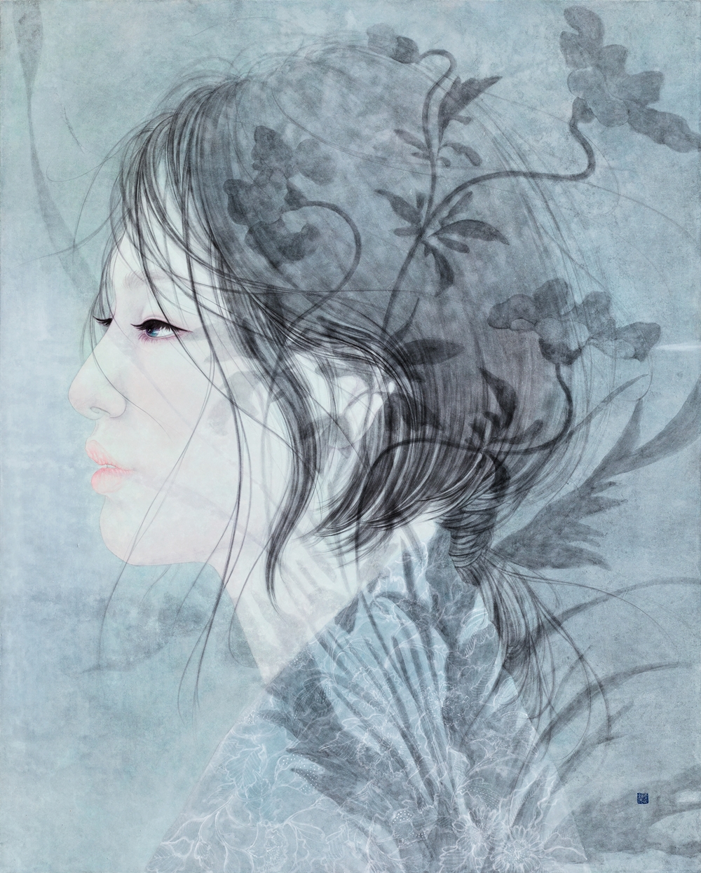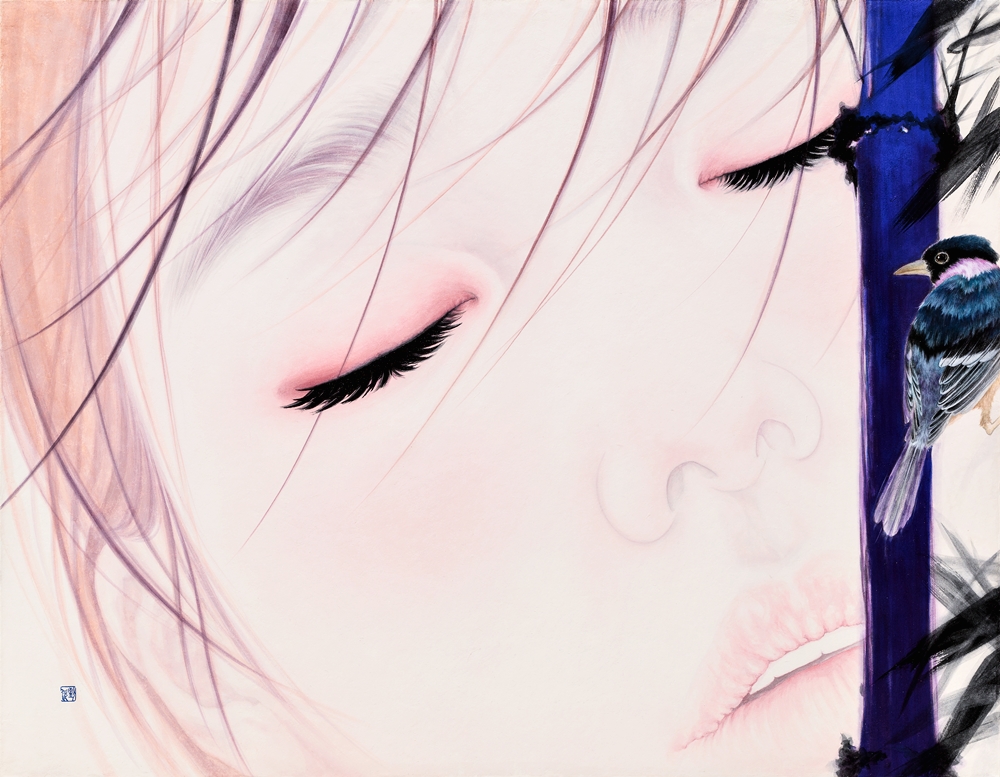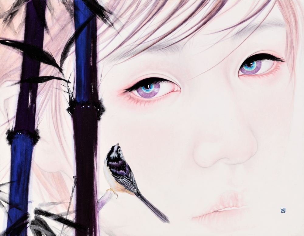 현대여성 속에 투영된 시간과의 조우 심선영 갤러리그림손 아트디렉터 미술사에서 여성의 등장은 그 사회적 주제와 제도에 대한 제재를 받아왔다. 예술에서의 여성은 시각적 관점과 해부학적 개념의 형식적 조형 만을 강조하는 과거로부터, 변화된 사회구조 안에서 다양성을 발견한 현재에 이르기까지 여전히 제약된 부분을 가지고 있으며 여성주의 개념의 작품으로 구분 되기도 한다. 하지만 모든 여성의 출현이 여성주의적 예술로 치중되는 것은 아니다. 물론 작품 속의 여성은 그 시대의 정치, 경제, 종교, 법률 등의 구조적 성격을 지니고 예술가의 심리적 상황과 환경을 반영한다는 것은 의심할 여지가 없다. 작품에서 여성의 출현은 작가와 긴밀한 그물 구조 상태에서 변화와 흐름을 반영하는 예술적 실천을 나타내고 있는 것이다. 예술은 삶을 반영하며 삶은 예술 속에 있다는 말처럼 예술로 표현 할 수 있는 범위는 무한대라는 비 영역을 말해주듯이 예술에서 표현된 미적 경험은 인간의 이성과 감성을 모두 뛰어넘는 자유로운 유희이다. 우리는 예술 속 여성을 통해 아름다움에 감동하여 감정이입을 하거나, 그 대상이 되어 새로운 이상적 경험을 맞이하는 순간이 있다. 그 시점이 바로 미적 관조자의 독자적 상태일지라도 우리는 작품을 통해 작가와 감정을 함께 나눌 수 있는 것이다. 강유림 작가의 화두 또한 ‘여성’이다. 작가는 줄 곳 여성만을 그려왔다. 여성의 아름다움을 강조하려는 것보다 여성으로서 살아가야 하는 숙명과 현실에서 맞닥뜨리는 상황을 여성으로서 어떻게 헤쳐나가야 하는지를 여성 인물을 통해 전달하고 있다. 인물의 핵심은 표정이다. 표정에는 많은 감정이 숨어 있을 수 있다. 우리는 현대사회에서 표정을 감추고 살아야 하는 경우가 많이 발생한다. 감정을 숨기고 살아가는 현대인에게 표정은 그저 삶의 대처방안이고 현실사회의 기본이 되었다. 솔직한 어린 아이의 감정은 성인이 되면서 점차 적으로 제한된 감정표현으로 변화해 가는 것이 사실이다. 작가가 표현한 여성 인물들 또한 감정을 쉽게 드러내지 않는다. 하지만 숨겨진 감정은 인물의 눈과 배경을 통해 간접적으로 엿볼 수 있다. 대나무, 텍스트(한자), 화조, 산수의 등장은 작품 속 여성들이 과거의 시간과 조우를 하고 있다는 것이다. 작품 속에 등장한 여성은 현대 여성이다. 현대여성이 과거와 조우를 한다는 것은 과거의 시대적 제도와 사회적 역할을 지나, 현재 이 시대를 살아가는 여성의 상황과 교차하는 부분을 살피려는 의도가 있다. 과거의 제도적 제약은 현재에 이르러서도 크게 변함이 없지만 현대여성이 과거로 되돌아 가는 것이 아니라 과거를 관조하며 현시대를 고찰하고자 한다. 현대 사회는 여성의 인권과 권리를 위해 노력하고 있음에도 불구하고 권리와 의무에 대한 제도적 원리는 아직 불완전하다. 작품 속 여성들은 이러한 상황을 대처하는 의지를 감정적 표현으로 나타내고 있다. 여성들은 과거의 시간에서 벗어나길 원할 수도 있고 그 시간에 머물며 자신을 바라볼 수도 있으며, 과거를 잊고 새로운 자신을 맞이하고 있는 과정일 수도 있다. 그녀들이 바라보고 응시하는 것은 현대 사회에 대응하는 무언의 저항이며, 독립이다. 때로는 아련한 눈빛으로 때로는 어딘가를 응시하는 눈빛으로 우리에게 대화를 요청하고 있으며 그 대화는 그녀들에게 휴식이 되기도 하고, 안식의 장소가 되기도 한다. 현대 사회에서 부딪히는 여성의 삶은 치열한 현장에서 지쳐가는 정신과 무게로 인하여 자신만의 쉼의 장소를 찾고 있는 것이다. 몇 백 년 과거 여성들 또한 그 상황이 다르지 않음을, 그녀들은 자신들의 방식으로 삶의 가치를 찾아 갔으며, 삶의 대안을 마련했다는 것을 작가는 현대여성과 과거 여성이 표방한 조형으로 그 감정을 이야기하고 있다. 지극히 자연주의적 표현을 강조하는 것은 그 의미가 있다. 과거의 여성을 대표하는 신사임당 초서를 배경으로 현대여성이 모습을 드러내는가 하면 그녀의 그림과 오버랩 되는 현대여성의 상황적 설정은 단순한 과거의 접근이 아닌 정신적 개념과 사상을 본질적으로 모색한다는 가치를 부여하고 있다. 과거의 여성이 행하였던 실천과 행위는 자신이 할 수 있는 최대한의 방어와 삶의 의지를 나타낸 것으로 그 시대의 비판적 인식에 대응하는 동시에 극복하고자 하는 방식이었다. 작가는 현대여성의 본질적 변화에 따른 불안정한 혼란을 과거여성의 의지표방을 오마주 하면서 현대여성에게 미적 휴식을 제공하고 있는 것이다. (이하 생략)