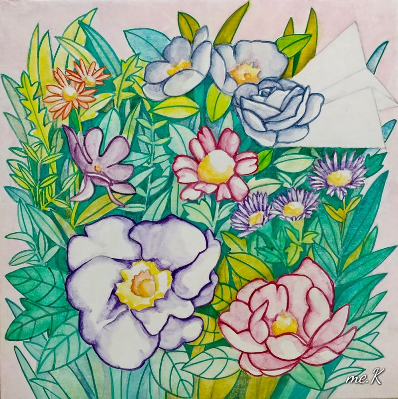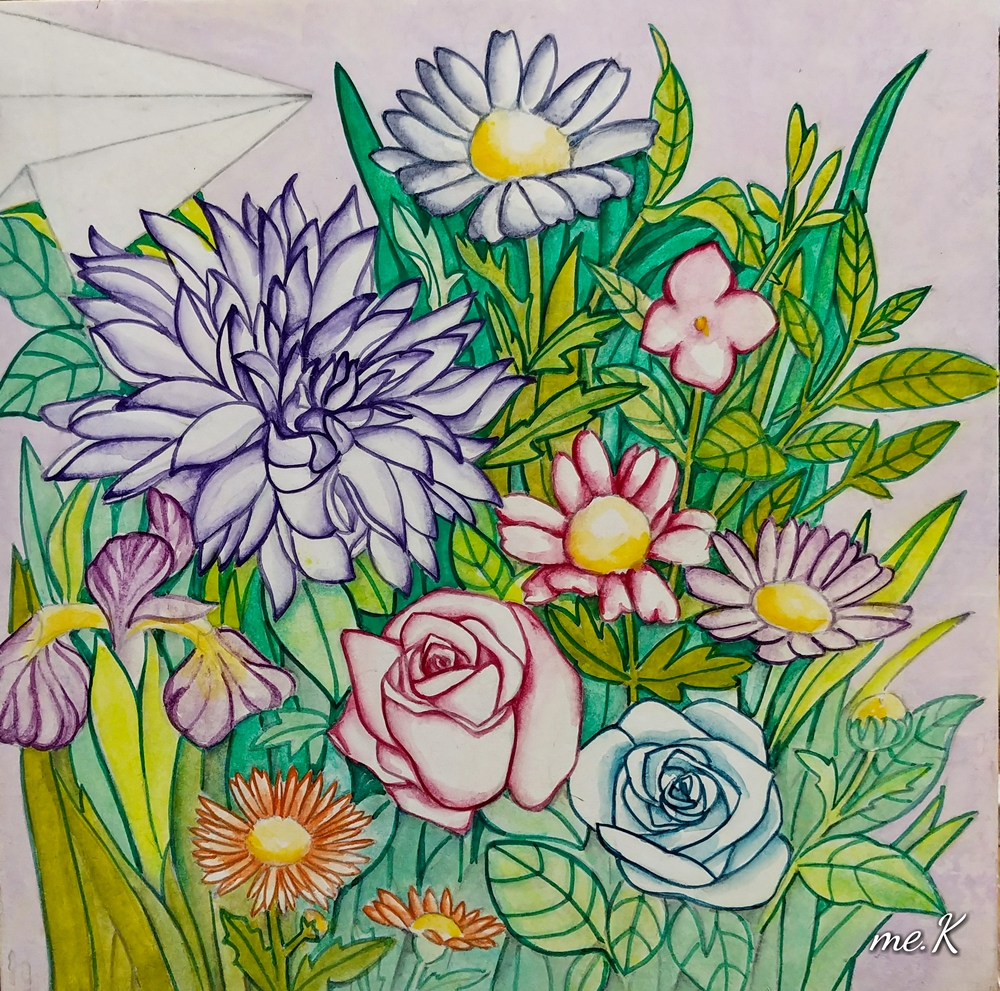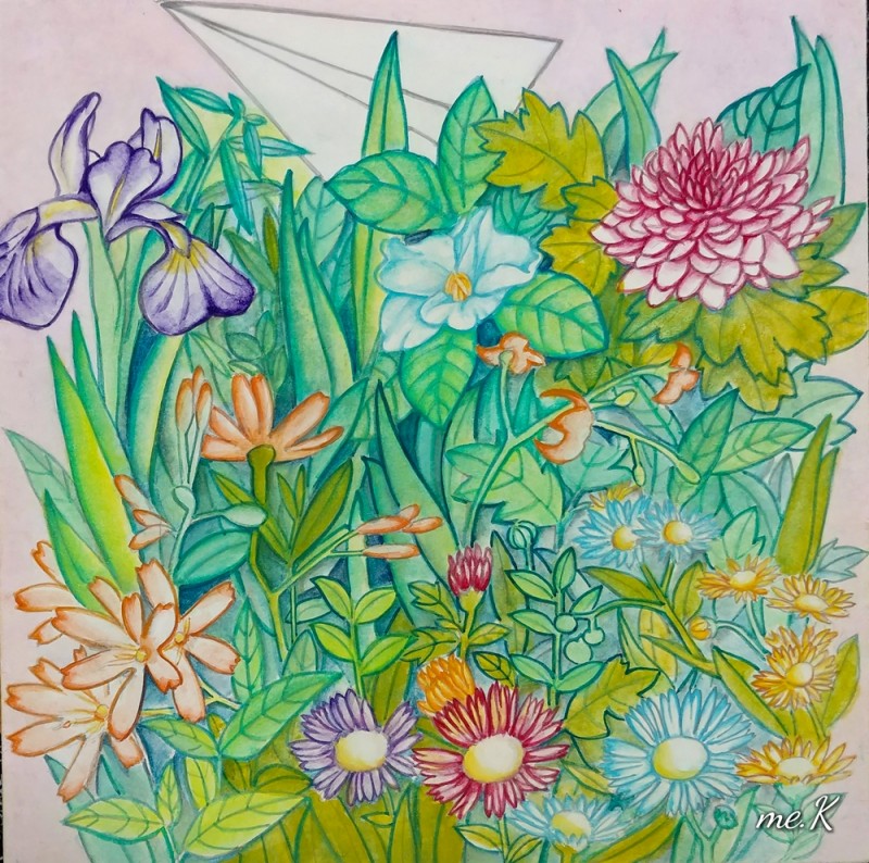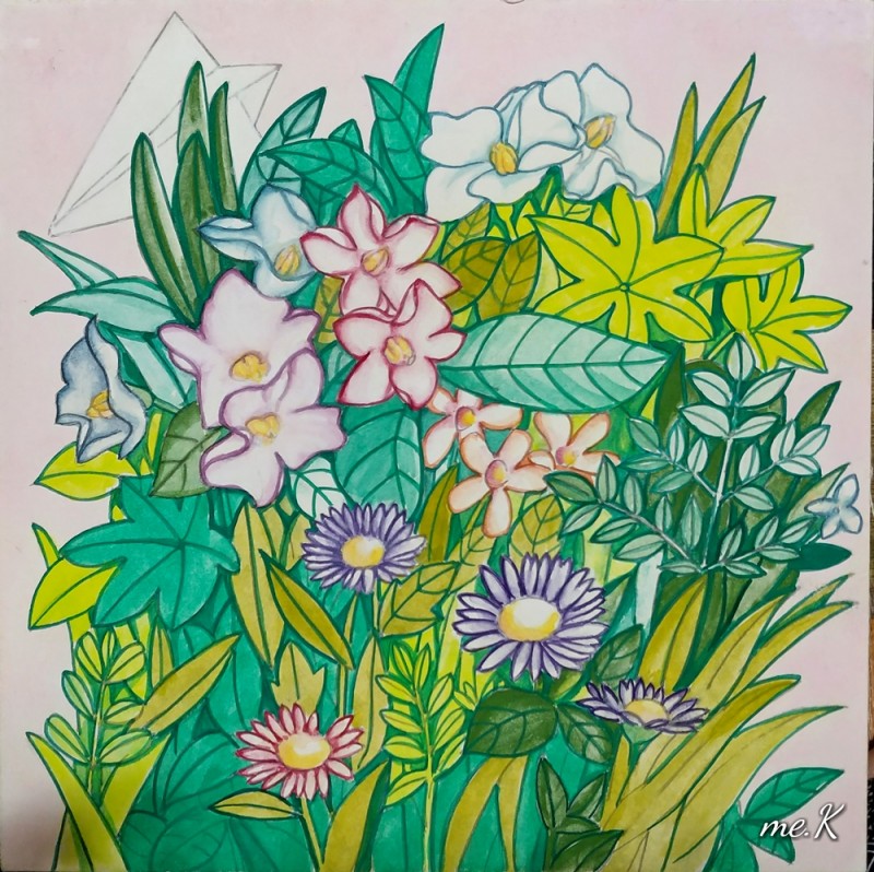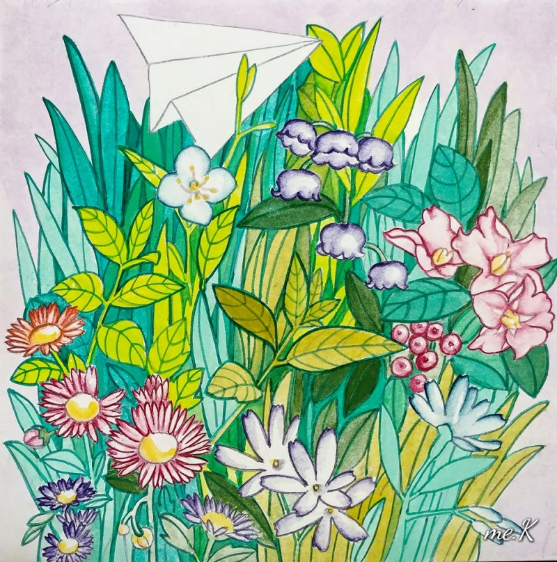 작품의 모티브는 민화의 화접도에서 가져왔으며 꽃과 나비대신, 종이비행기로 표현한 작품입니다. 작품은 분채와 한지를 이용하여 진채기법으로 생동감과 한국적인 아름다움을 표현하였습니다. 또한 꽃과 풀이 흐드러지게 밀집되어 에너지가 느껴지는 구도를 중요시 했습니다. 옛 선인들이 그림에 소망을 담은 의미처럼 꽃은 자연, 힐링의 의미와 종이 비행기는 현대 사람들의 화합, 기쁨, 사랑, 행복, 부귀를 상징합니다. “꽃 흐드러지다”에서 꽃과 비행기는 나의 경험적인 어릴적 추억, 길을 가다 보고 느꼈던 주관적 꽃을 의미하기도 합니다. 우리가 자연을 통해 느끼는 어떤 세계도 나에게 경험되지 않는 한, 어떤 독립적 존재 성격도 갖지 못할 수도 있습니다. 나에 관계함으로써 비로소 존재할 수 있는 것으로 설명될 수 있기 때문입니다. 나에게 지각되어 나의 관념으로 환원되지 않는 한, 버클리의 ‘주관적 관념론’(subjective idealism)에서도 이야기 하고 있듯이 하나의 ‘꽃’이란 관념은 그 꽃에 대해 지각된 내용의 다발에 한갓 ‘꽃’이란 이름을 붙인 것에 지나지 않습니다. 즉, 우리와 관계하고 감성적으로 느껴야 의미가 있다고 생각하고 있기 때문입니다. “꽃 흐드러지다”는 작가의 주관적 의미의 자연을 그린 전시입니다. 바쁘게 돌아가는 도시속의 우리는 자연과 멀어져 갔습니다. 자연의 감성을 잃어가는 현대인들의 삶을 돌아보고 자연의 에너지를 느꼈으면 합니다.