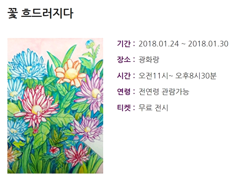 | Exhibition Place | 광화랑 | Exhibition period | 2018년 1월24일 ~ 2018년 1월30일 | Exhibition Writer | 김은미 |