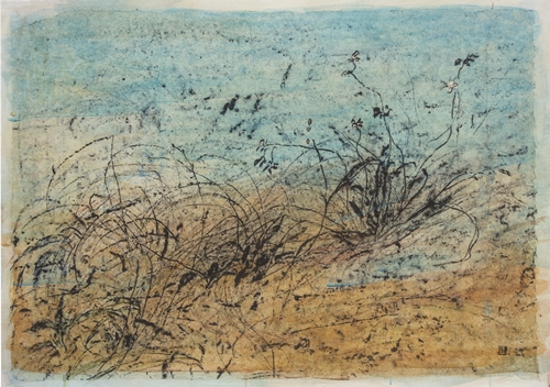 올봄 동네에 작은 공원의 경사진 땅에서 솟아오르는 연두빛 새싹을 보았다, 검붉게 다져진 땅에서 여리여리하게 솟아오르는 새싹의 연두빛은 마치 세상에 태어난 아기 같은 느낌이었다.어떻게 그 어둠의 시간들을 견디었을까, 어떻게 땅의 두께를 뚫고 나왔을까, 어떤 모습으로 자라게 될까,,,, 세상의 모든 존재들은 자신만의 고유한 모습을 지니고 세상에 오지만 살아가기에 유리한 모습으로 조금씩 변해가며 살아가게 된다. 적응이라는 말로 표현할 수 있는 이 삶의 과정들은 단편적인 것이라기보다 아주 다양한 층위의 그물망으로 이루어진 것일 것이다. 아무리 작은 존재일지라도 일방적으로 영향을 받기만 하는 것이 아니라 주변에 자신의 파장을 내뿜으며 영향을 미치게 마련이다. 이러한 모습들을 색이 스미고 겹쳐짐에 따라 그림의 느낌이 조금씩 변해가는 과정을 통하여 표현하고 싶었다. |