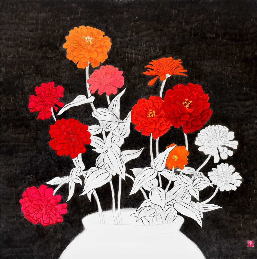 땅속의 생명체가 동면에서 깨어난다는 정유년 경칩驚蟄에 즈음해 수묵채색화가 안해경이 우리가 잠시 잊고 살아온 ‘여유’를 주제로 근작전을 위한 신작들에 몰두하고 있다. 여유는 어원적으로는 둘 이상의 것을 ‘함께 놓는다’(put together)는 말에서 유래했지만, 물신物神주의가 팽배한 오늘의 발빠른 사회에서는 까마득한 옛 일로 기억되고 또 잊혀졌다. 그러나 근작전에서 안해경은 여유가 애초 우리와 지근 거리에 있었다는 걸 작품으로 보이고자 한다. 이를 위해 주변에서 흔히 볼 수 있는 백일홍과 목단을 빌려, 찌든 세속에서도 여유를 잃지 않았던 조선시대 선비들의 배려配慮의 마음을 반추하는가 하면, 달항아리의 표면에 수국과 연화를 근접시켜 그렸던 선대 화가들의 여유를 오늘의 자신의 것으로 전유하고자 한다. 더 나아가 작가는 여유가 끊임없이 새 생명을 산출하는, 요컨대 자연의 원천이라고 생각한다. |