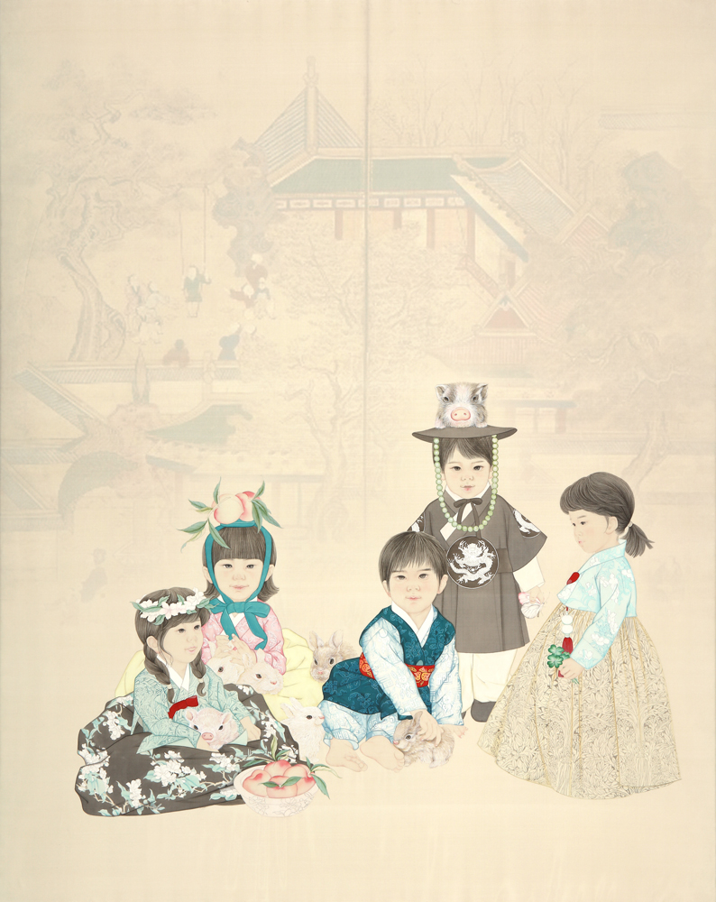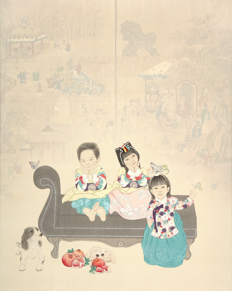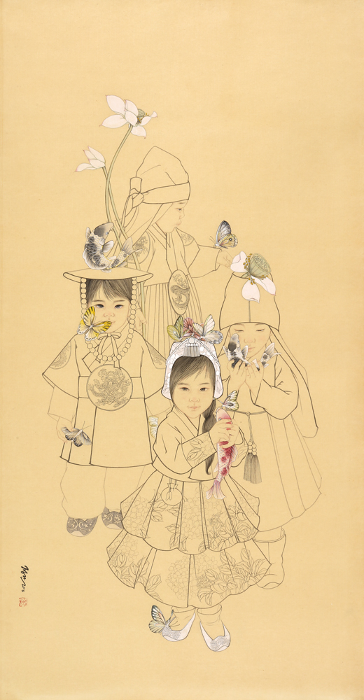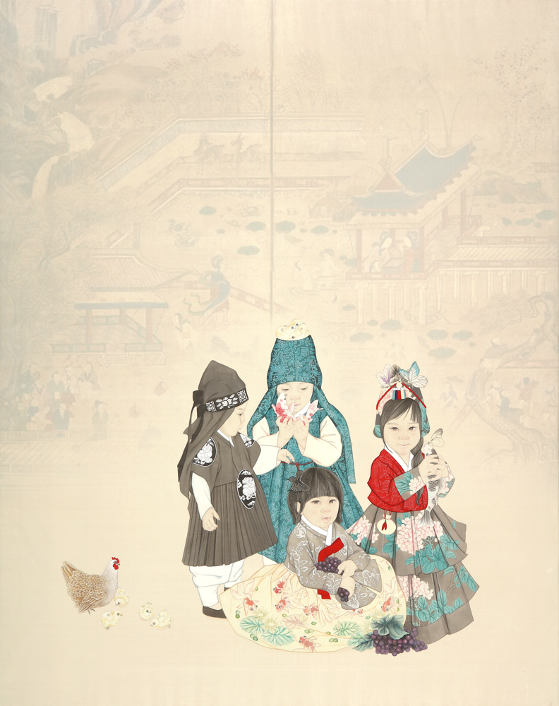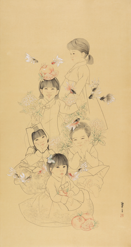 백동자는 많은 수의 아이를 뜻하는 것으로, 백동자도는 예부터 다산을 기원하는 마음으로 어린아이들이 뛰어노는 모습을 담은 그림입니다. 이 그림을 결혼하는 부부의 신방에 그려 넣어주고 다산과 풍요를 기원했답니다. 비혼과 저출산의 사회문제에 당면해 있는 현 시대에 옛 선조들의 바람을 담은 그림의 의미를 다시 한 번 되새겨 보아도 좋겠습니다. 2023. 8. 작가 김정란
