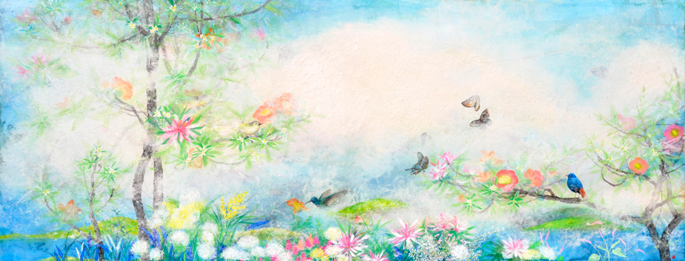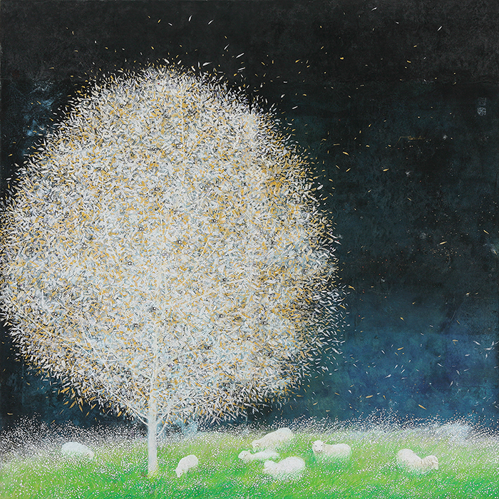 I have been working on <The Tree of Life> series, mainly on the theme of healing through life, working on traditional Korean Dak paper. Kim Jeong-soo used traditional Korean Dak paper to express the utopian world such as Eden, Life Tree, and Life Water based on Bible.