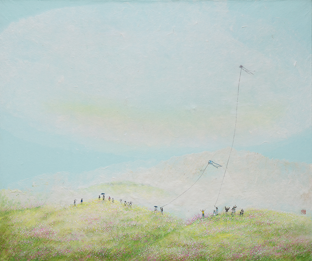 I use mulberry paper (Dak Jong-ee; Hanji) to bring life and breathe (r?ah) living energy(生氣) into the work. Through the layers of work, mulberry papers which had come from the nature become the nature itself again. At this moment, my breath and the work become one, and the fibers of the paper are poured on the screen like a breath. In nature, "life" comes alive. And that "vitality" is accompanied by "healing My work is to breathe life into the drawings with these papers, just as God's breath was poured out on me and revived my life.