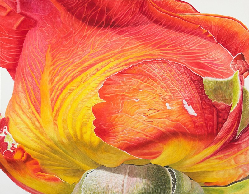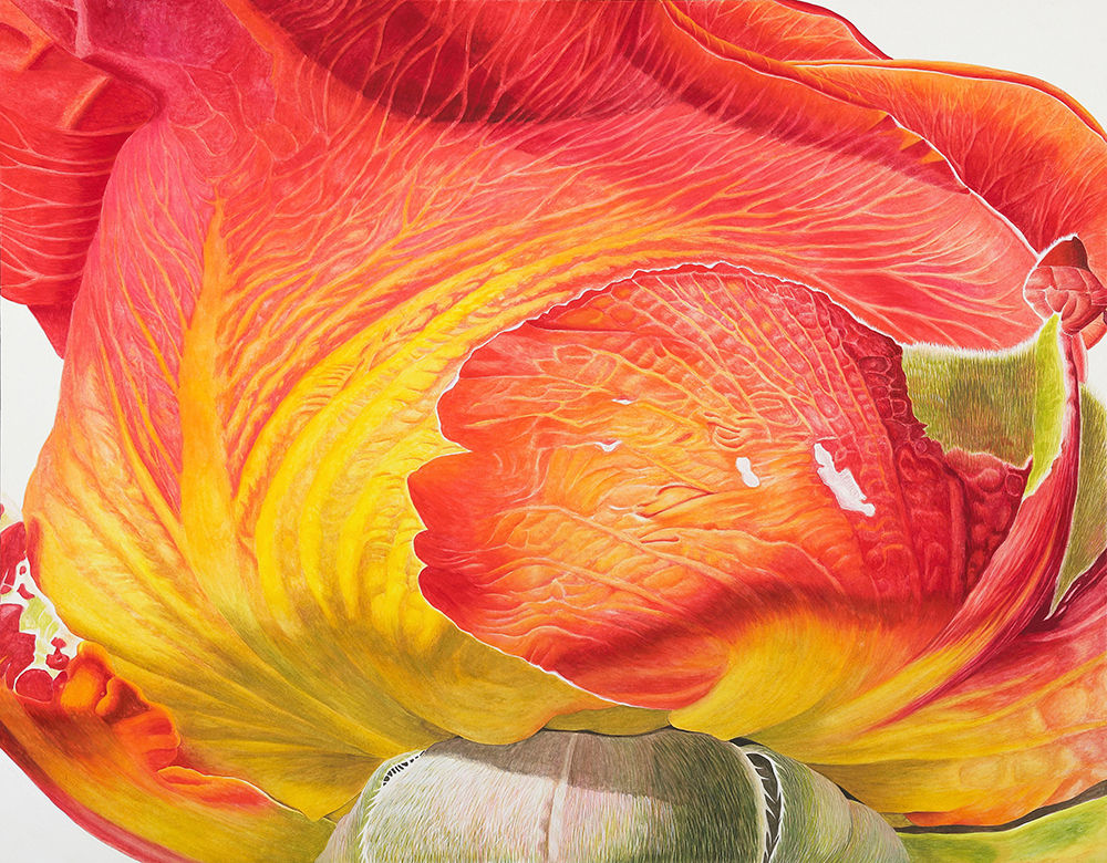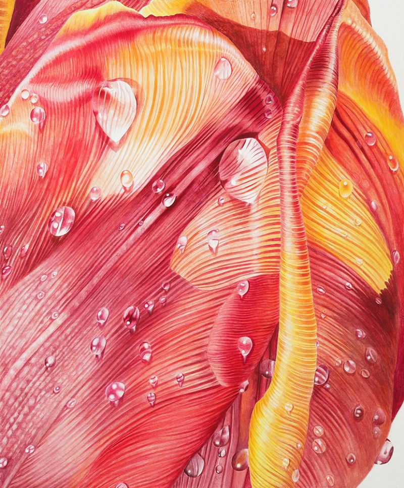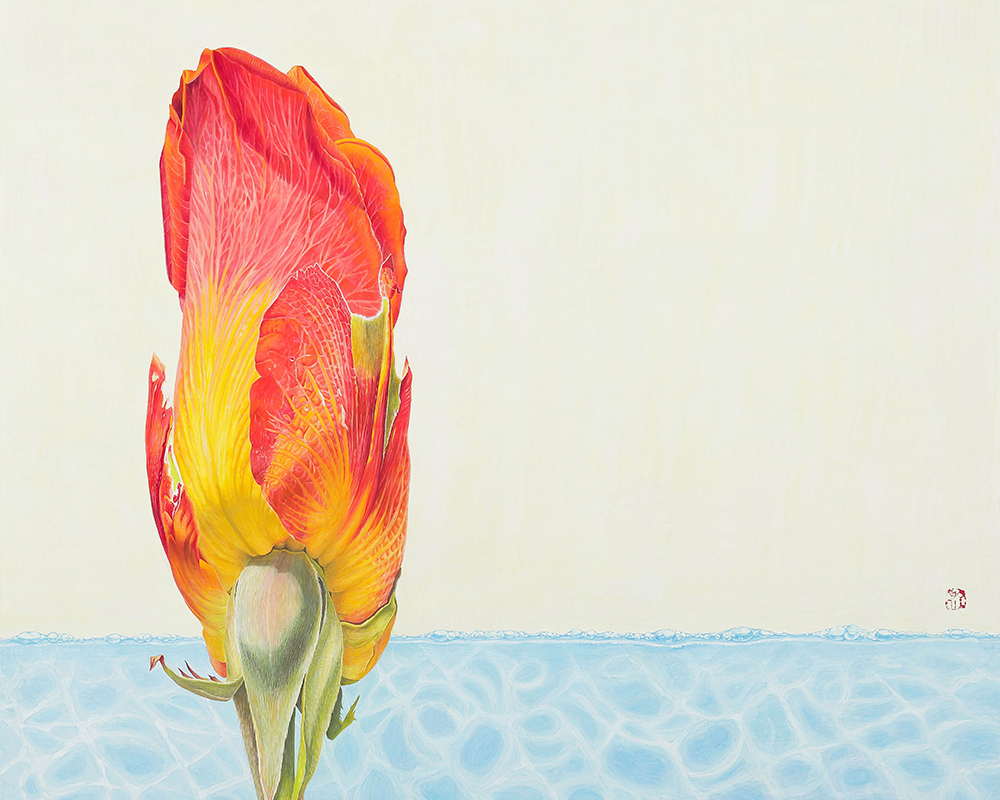 예로부터 우리나라 초상화 기법을 보면 "털끝 한 올이라도 다르면 그 사람이 아니다(일호불사편시타인, 一毫不似 便是他人)" 이라 하여 작은 결함조차 놓치지 않고 표현하였다. 인물의 외관의 모습뿐 아니라 성품과 병력까지 알 수 있을 정도라 한다. 즉, 미화하거나 생략하는 법 없이 본성 그대로를 표현하는데 집중했다는 것을 알 수 있다. 터럭 하나, 주름 하나, 점 하나, 상처 하나까지 세세하게 세필로 그려내고 있다. 이러한 점은 작가의 ‘화훼의 생명력을 표현하는 방법’에 영향을 미쳤다 할 수 있다. 식물이 꽃을 피우기까지 겪은 역경과 인내 등에 대한 경외감을 표현하기 위해 꽃잎의 상처하나, 잎맥의 표현 하나까지 놓치지 않고 표현하려 하였다. 열매를 맺기 위해 역경을 이겨내는 꽃의 강인한 생명력을 표현하고자 한 것이다. 채색을 올리고 호분과 방해말, 수정말을 다시 올리고 스크레치 기법으로 긁어내거나, 세필로 채색을 덮고 올리기를 수없이 반복하는 행위는 화훼의 생명력이 갖는 견고함을 표현하기 위함이라 할 수 있다. 나아가 작가는 화훼가 새롭게 만들어내는 이미지에 주목하게 되었다. 꽃잎 위의 물방울로 빚어낸 <화훼본색-pearl> 이나 꽃잎의 광택으로 만들어진 <화훼본색-silk> 등이 그러하다. <화훼본색>으로 새롭게 만들어지는 자연의 모습에 새삼 감동하며 아름다운 생명력의 영원성을 기대해본다.